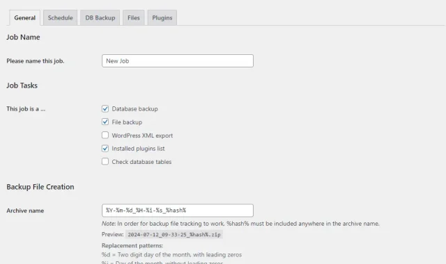 Each of the tabs contain various settings for this single ‘backup job’. You can use this to configure multiple backups with different settings. For example, you can use the Schedule tab to create a scheduled backup.